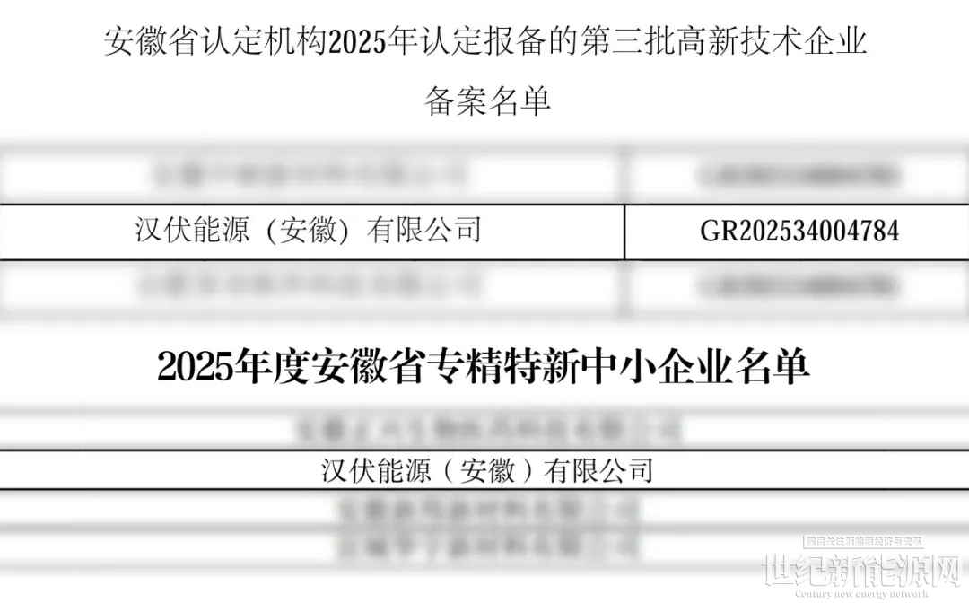 近日,汉伏能源(安徽)有限公司凭借其在高效光伏组件制造及光储一体化领域的技术创新与产业化成果,成功斩获“国家级高新技术企业”与安徽省“专精特新中小企业”两项重要认定。这不仅充分体现了公司在技术研发与创新能力方面的综合实力,也标志着其作为区域战略性新兴产业代表企业,获得了政府与行业的高度认可。