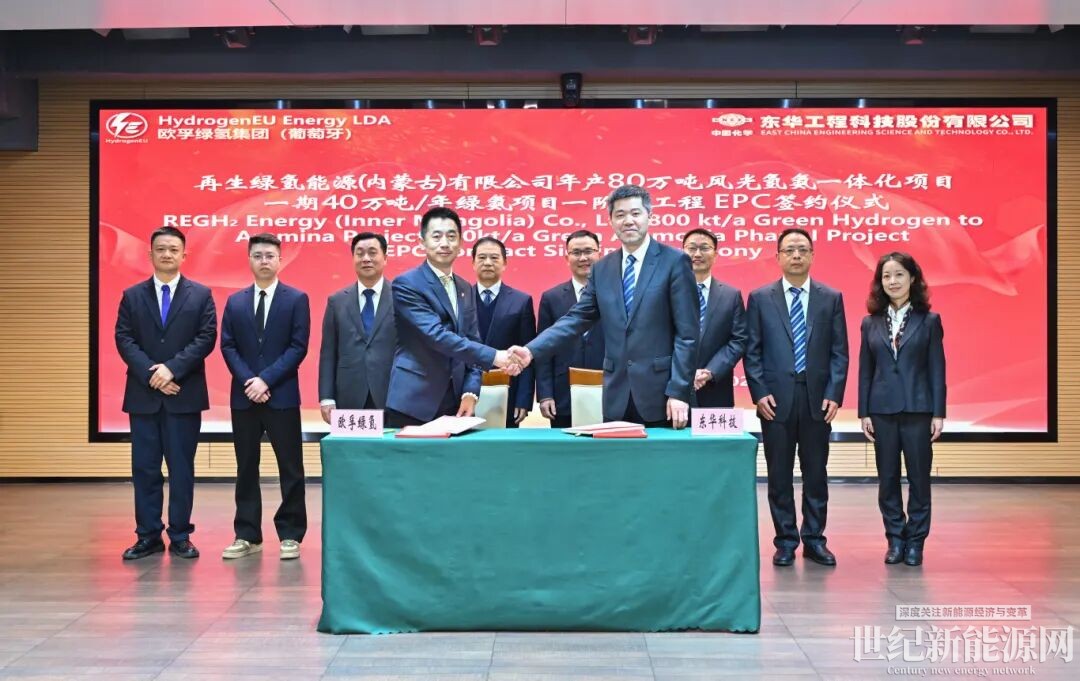 3月5日,中国化学工程东华公司牵手欧孚绿氢集团(葡萄牙),与旗下再生绿氢能源(内蒙古)有限公司共同签署年产80万吨风光氢氨一体化项目一期一阶段工程绿氨工程EPC总承包合同。东华公司党委副书记、总经理孟陈周,欧孚绿氢首席技术顾问丁辉、副董事长刘我翔出席仪式并见证签约,双方就深化绿色能源领域合作进行深入交流。