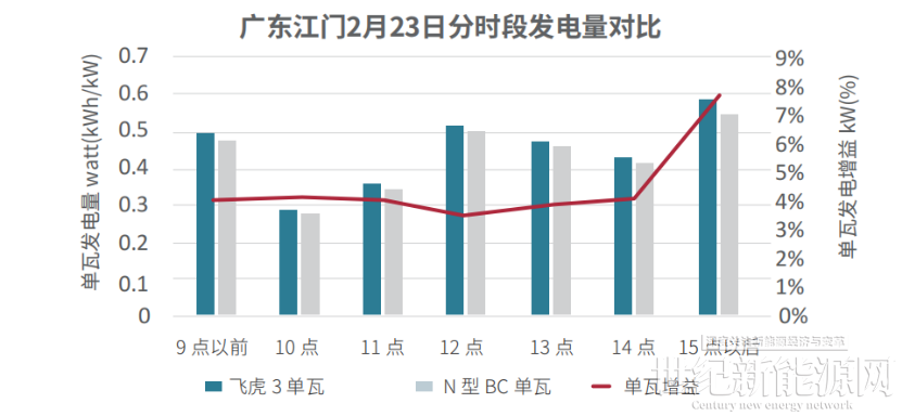 早8点前单瓦增益达4.02%,飞虎3组件更早进入有效发电状态;