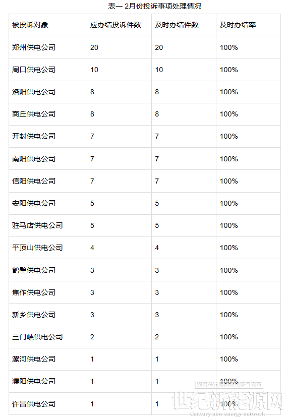 能源企业在2月份应办结投诉95件,及时办结95件,及时办结率100%。