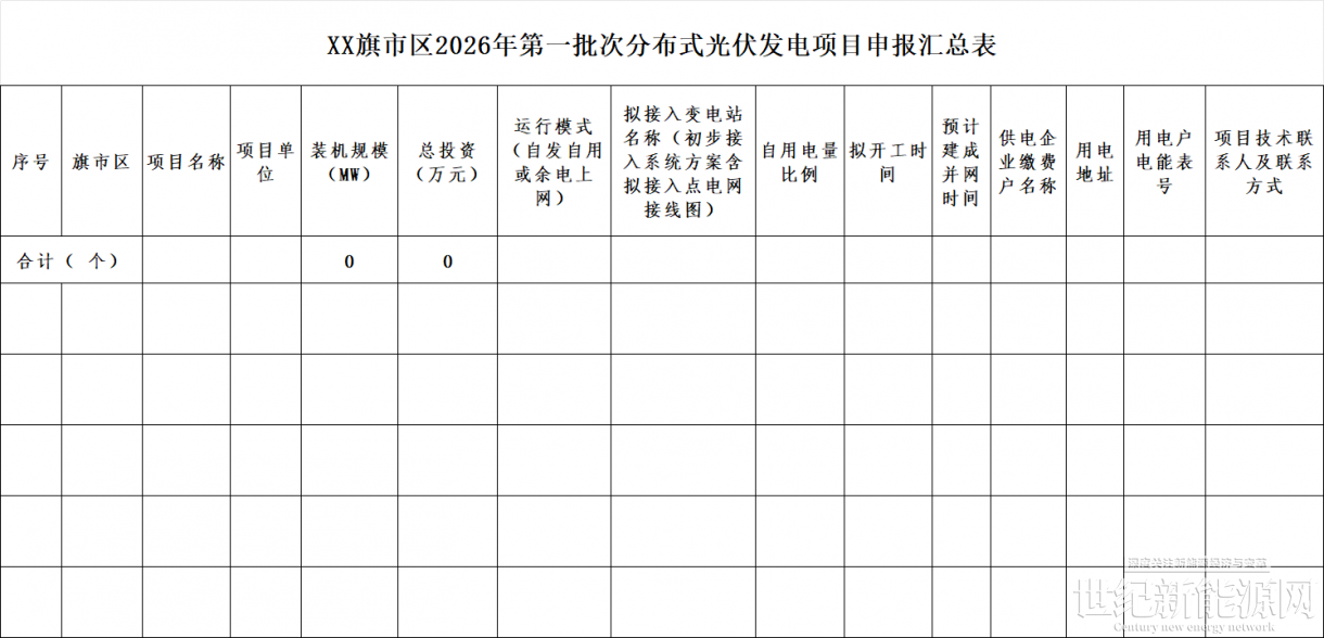 3.XX旗市区2026年第一批次分布式光伏发电项目申报汇总表