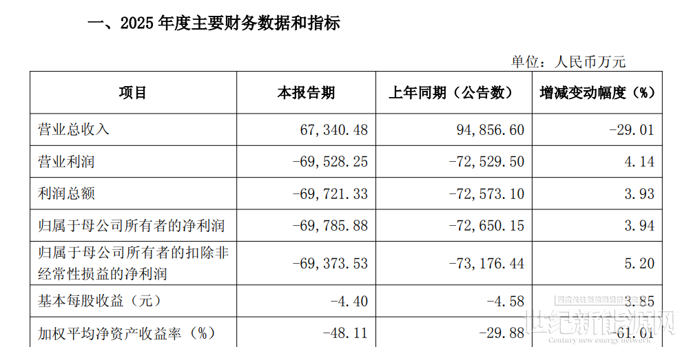 业绩方面,公司2025年业绩快报显示,实现营业收入6.73亿元,同比下滑29.01%,归母净利润亏损6.98亿元,扣非净利润亏损6.94亿元,经营压力凸显。
