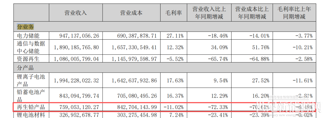 然而,技术迭代的速度远超预期。随着锂电储能凭借更高能量密度、更长循环寿命逐渐成为市场主流,再生铅业务的处境急转直下。财务数据显示,2024年该板块毛利率已跌至-3.11%,2025年上半年进一步恶化至-11.02%,陷入“卖得越多、亏得越深”的困局。即便公司主动减产,颓势依然难挽,成为名副其实的“利润黑洞”。