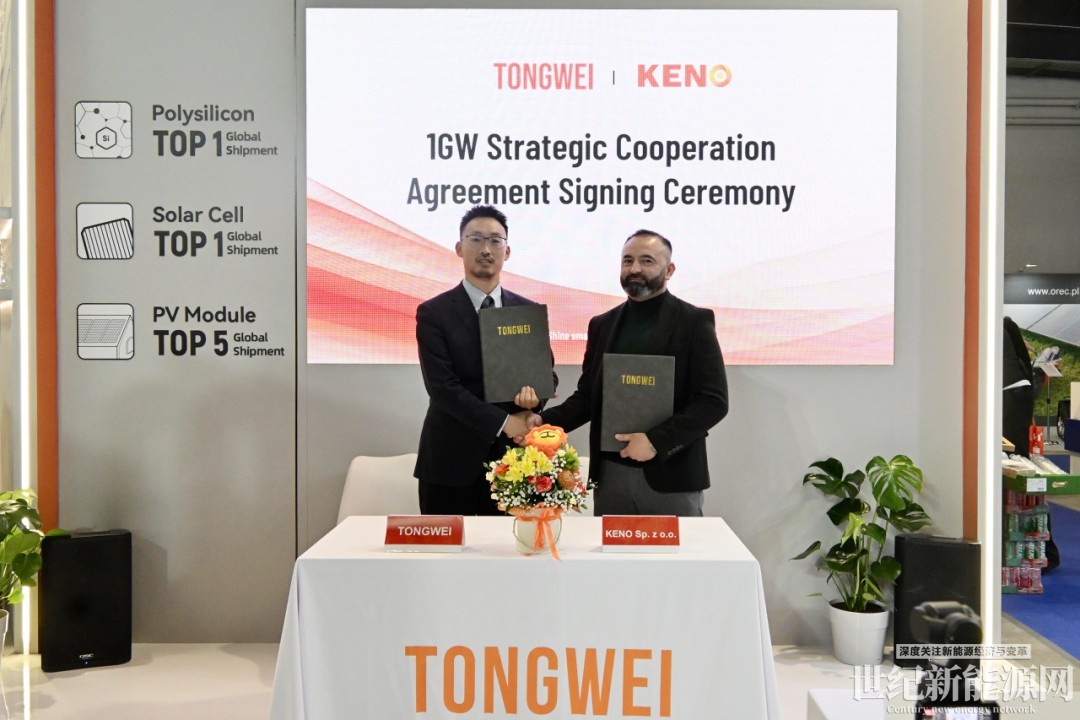 近日,通威与波兰最大光伏分销商 KENO Sp. z o.o. 正式签署1GW组件合作协议。通威股份光伏商务部组件营销东欧及美洲区负责人季卫华与KENO首席执行官Paweł Grzegorczyk代表双方签约。此次合作将进一步深化通威在欧洲市场的布局,加速高效组件在东欧地区的推广落地,为当地能源转型提供坚实的产品支撑。