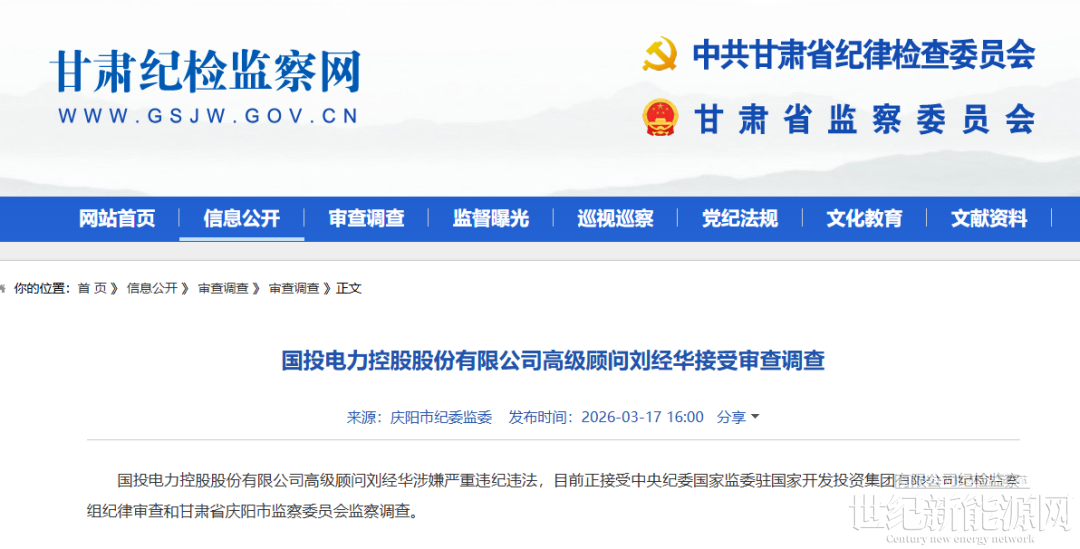 据甘肃纪检监察网,国投电力控股股份有限公司高级顾问刘经华涉嫌严重违纪违法,目前正接受中央纪委国家监委驻国家开发投资集团有限公司纪检监察组纪律审查和甘肃省庆阳市监察委员会监察调查。