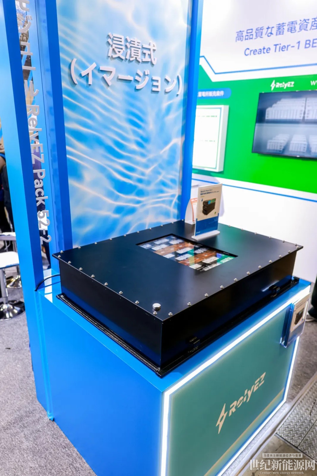 在技术展示区域,远信储能同步展示了浸没式液冷储能产品方案。
