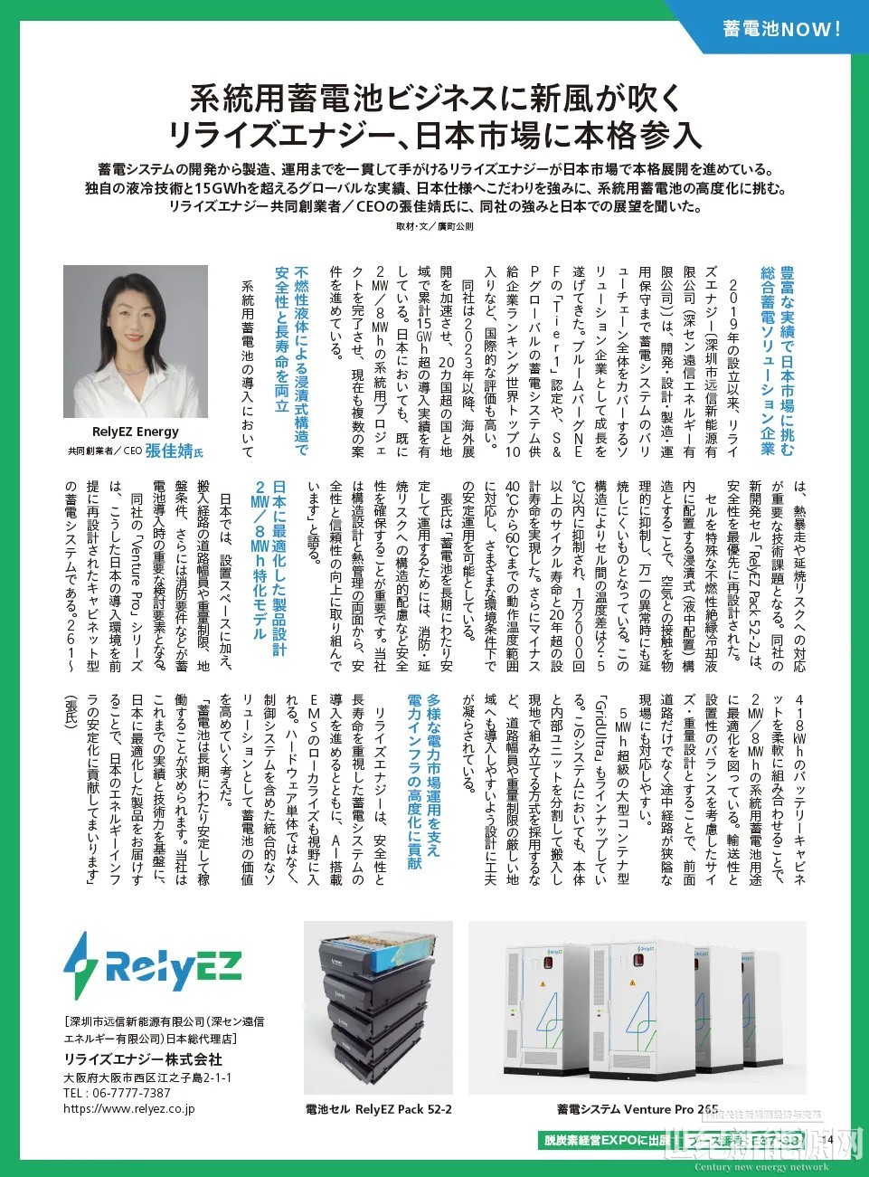 日本新能源期刊 SOLAR JOURNAL 专访远信储能CEO张佳婧