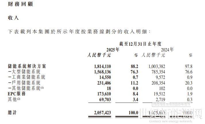 从业务结构看,储能系统解决方案仍是绝对主力,收入达到18.14亿元,占总营收88.2%。其中大型储能系统收入15.68亿元,同比增长99.67%,稳居第一大营收来源;户用储能系统收入2.31亿元,工商业储能系统收入1455万元,后者虽基数尚小,但随着公司募资扩产,有望成为新的增长极。
