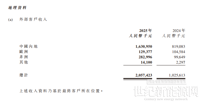 至2025年,中国内地收入达16.31亿元,占比提升至79.27%;非洲市场收入2.83亿元,占比13.75%,成为第二大市场;欧洲市场收入1.29亿元,占比6.29%,位列第三。