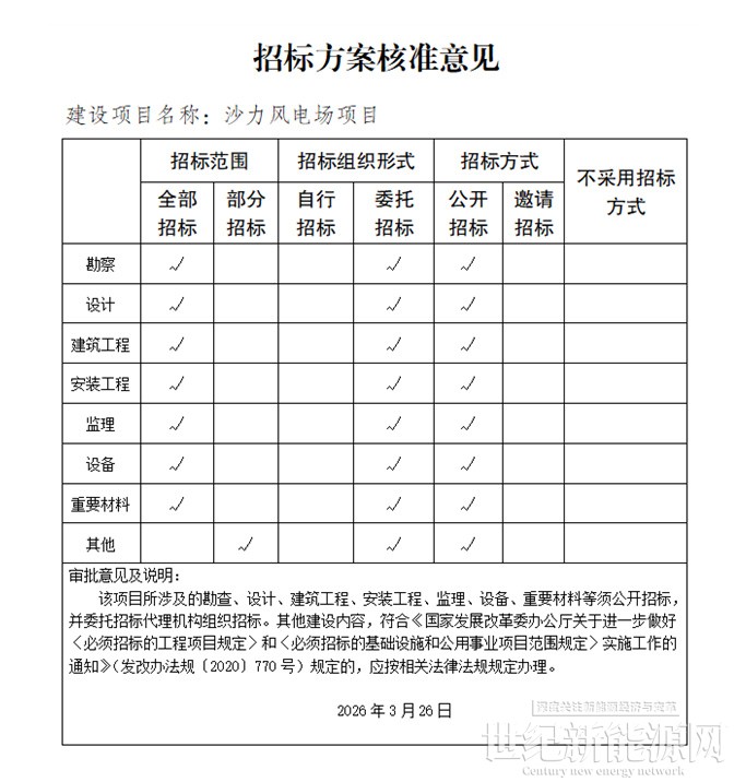 《丽江市发展和改革委员会关于上报沙力风电场核准的请示》(丽发改请〔2026〕20号)和有关材料收悉。经研究,现就该项目核准事项批复如下: