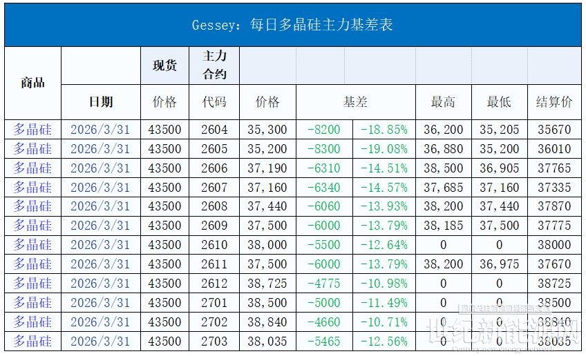 今日硅料价格整体维稳,N型料主流价格在40-43.5元/公斤,均价43.5元/公斤。N型颗粒硅主流价格在40-42.5元/公斤,均价42.5元/公斤。国产复投特级硅料主流价格在40-42.5元/公斤,均价42.5元/公斤,国产致密特级硅料主流价格在39-40元/公斤,均价39.9元/公斤。全球多晶硅料主流价格在19-22元/公斤,均价20元/公斤。