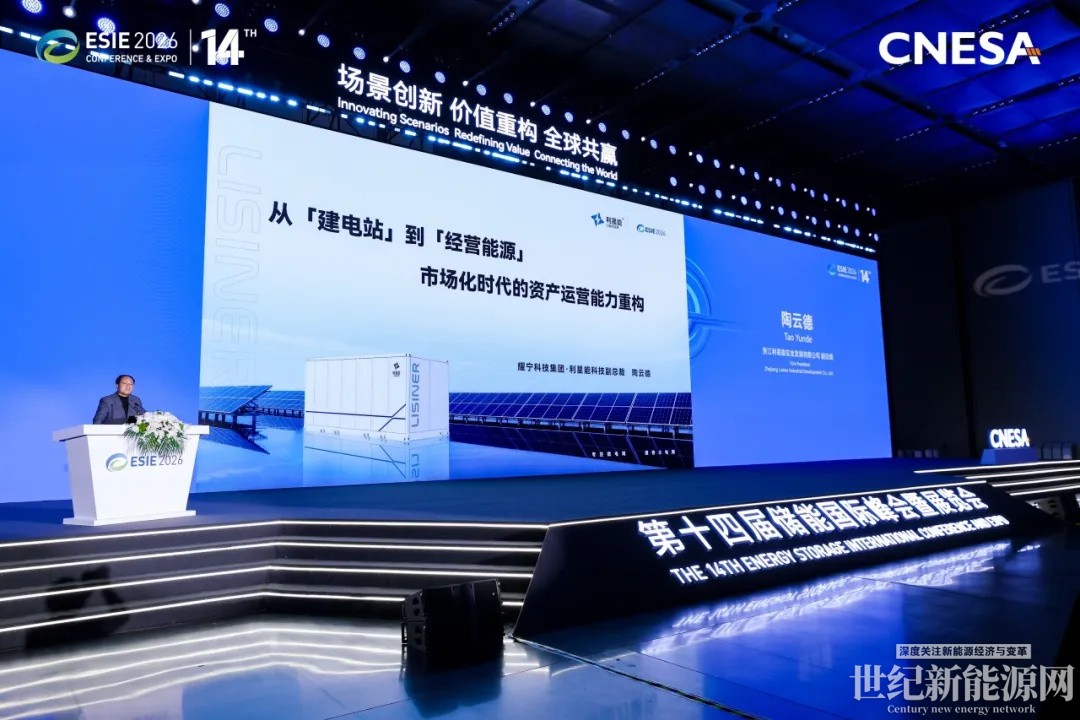 3月31日,第十四届国际储能峰会暨展览会(ESIE 2026)在北京盛大开幕。在开幕式主论坛上,利星能副总裁陶云德受邀发表了题为《从「建电站」到「经营能源」,市场化时代的资产运营能力重构》的主旨演讲。