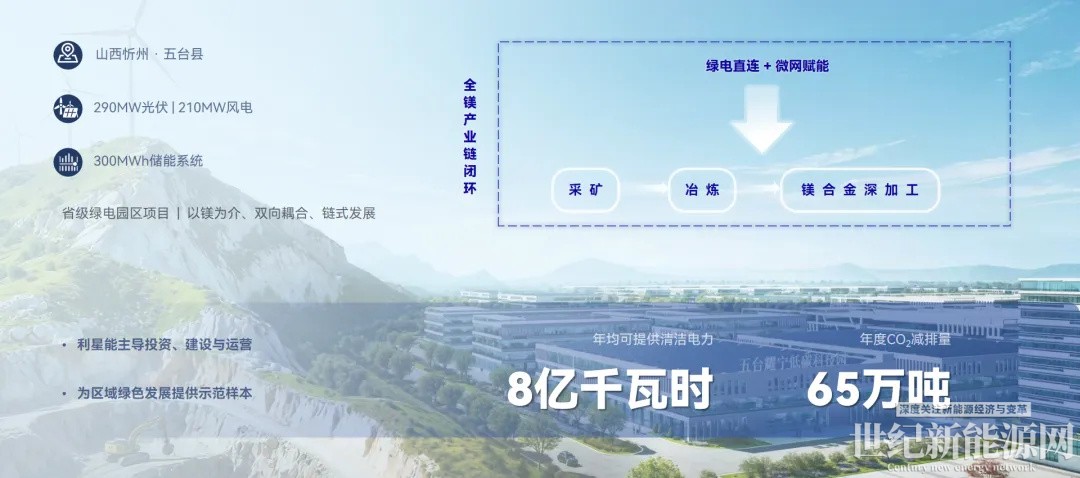 陶云德详细介绍了由利星能投资、建设、运营的山西五台绿电直连产业园区。项目以风光互补的多能耦合体系配合储能系统,实现了供能链路的源头可见与路径可循。绿电专线直供园区企业生产,赋能全镁产业链,新型储能创造多元价值,切实助力山西省能源转型、产业升级、多元发展的战略目标。