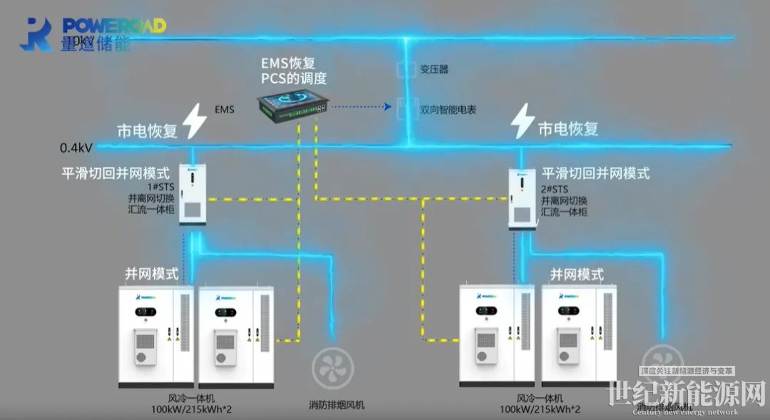 等市电恢复时 ,STS再让PCS平滑切回并网模式。EMS恢复对PCS的调度管理。