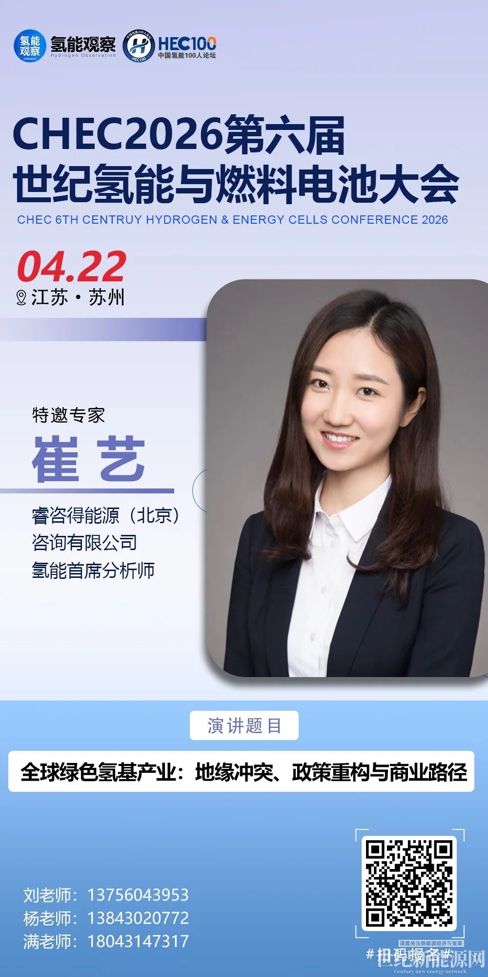 崔艺现任睿咨得能源中国区氢能市场首席分析师,专注于氢能领域的深度研究与市场洞察。