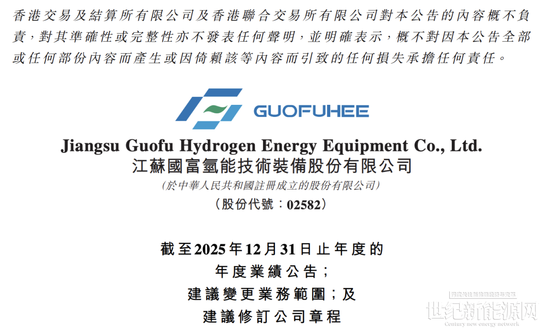 国富氢能表示,2025财年的经营亏损主要受以下多重因素影响:行业整体市场需求放缓、市场竞争加剧,以及信用减值损失增加所致。随著氢能行业逐步迈向成熟发展阶段,本公司将持续推进战略调整,通过技术突破、市场拓展及成本优化等举措,逐步改善经营业绩,提升盈利能力和抗风险能力。