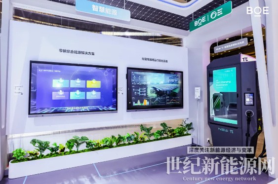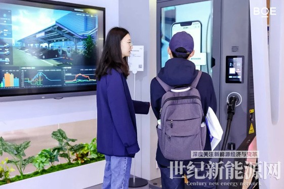 京东方能源聚焦零碳综合能源服务,以AI、大数据与物联网技术为核心,展示了覆盖“源-网-荷-储-碳”全链条的零碳综合能源解决方案。其中,光储充微网优化系统可实现光伏、储能与充电设施的智能调度。该系统集成AI多模态数据感知、负荷预测算法与自适应调度中枢,动态优化“光-储-充”协同策略并支持车网互动,显著提升绿电利用效率。作为光储充一体化的关键终端延伸,新派充(NEW π)多媒体充电桩集快速补能、触控交互与高清信息发布于一体,既是微网中的柔性负荷调节单元,也是人-车-场之间的商业互动入口。整体方案充分展现了京东方“屏之物联”战略在低碳领域的纵深落地。