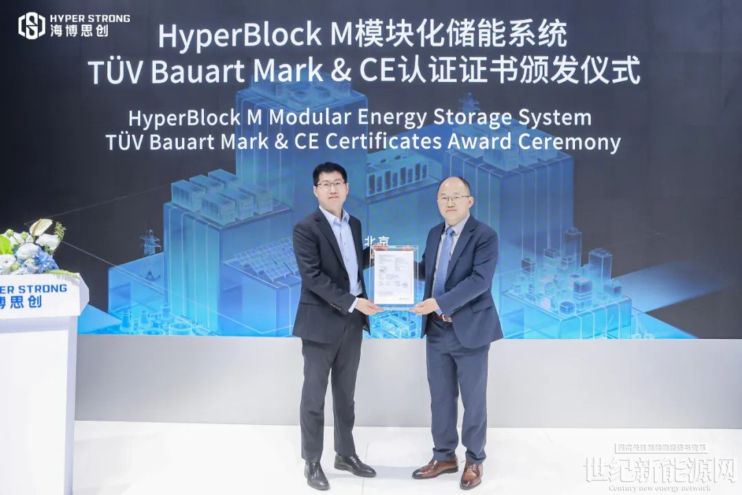 HyperBlock M是海博思创面向全球市场打造的新一代高性能模块化储能系统。其创新设计在安全性、性能与可靠性方面表现卓越,可灵活适配多种应用场景。作为行业内首款基于模块化技术平台并实现规模化应用的储能系统,HyperBlock M已在国内完成批量生产与现场交付。此次获得TÜV Bauart Mark及CE认证,意味着该系列产品全面满足欧盟及国际主流市场的严苛准入标准,为全球化布局提供坚实支撑。