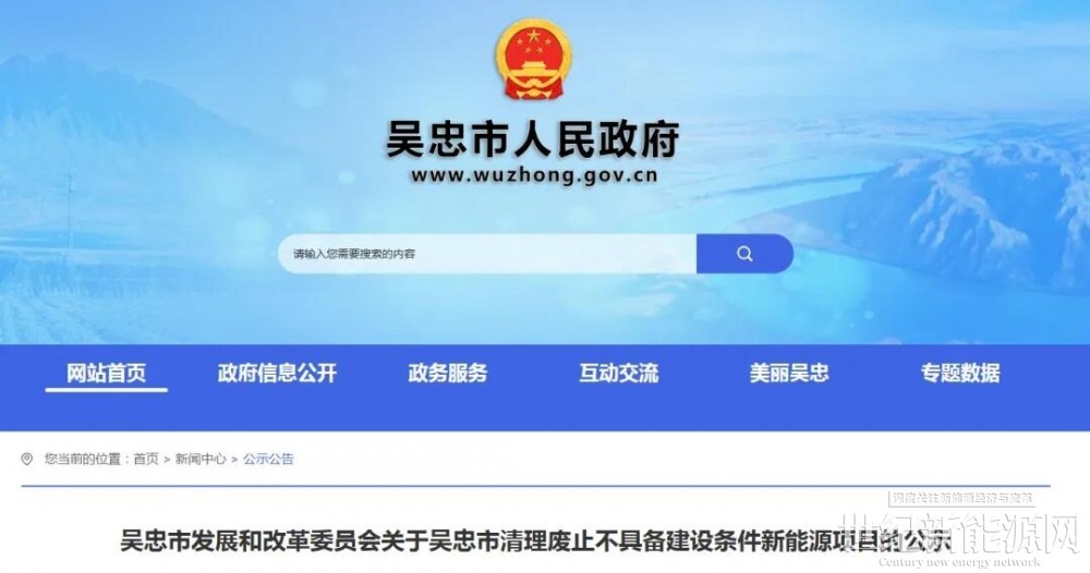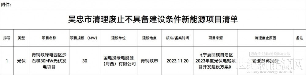 4月7日,宁夏回族自治区吴忠市发展和改革委员会公示吴忠市清理废止不具备建设条件的新能源项目。