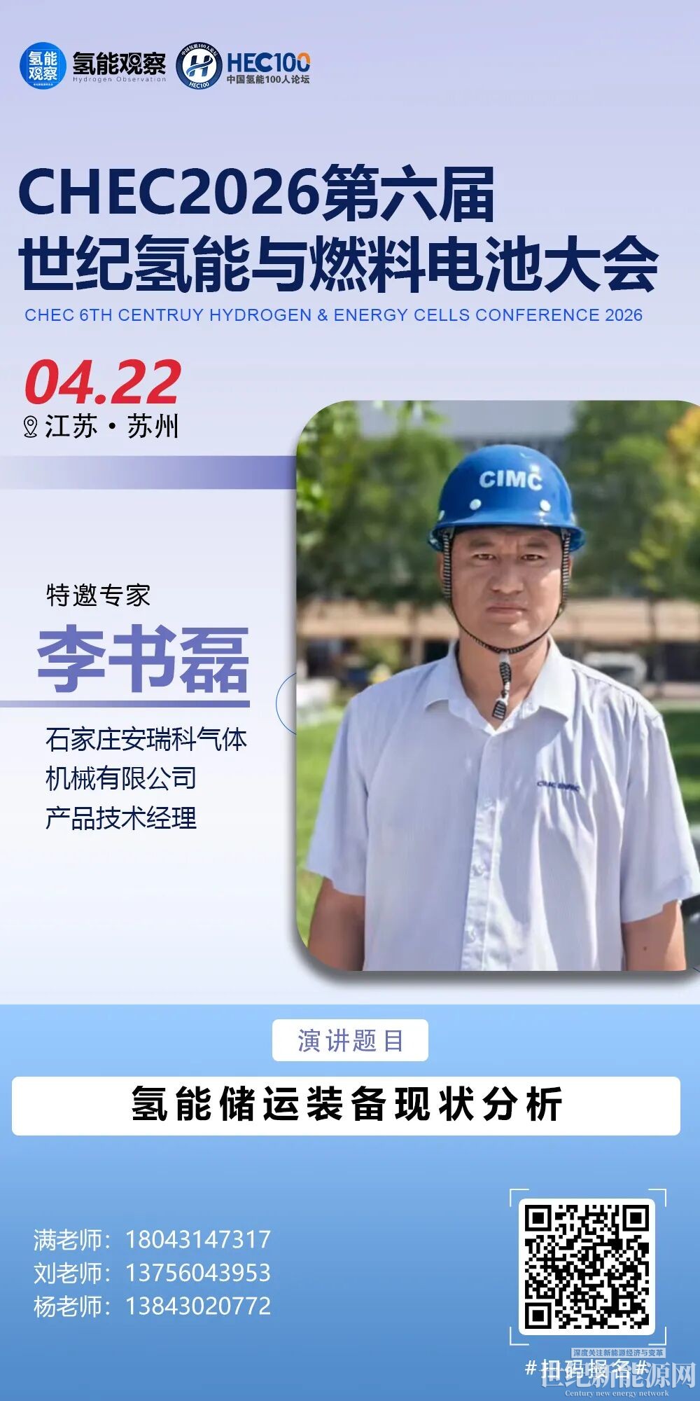 李书磊,高级工程师,石家庄安瑞科气体机械有限公司高压设计部经理,氢能储运装备产品技术经理。中国交通运输协会清洁能源车船分会专家。