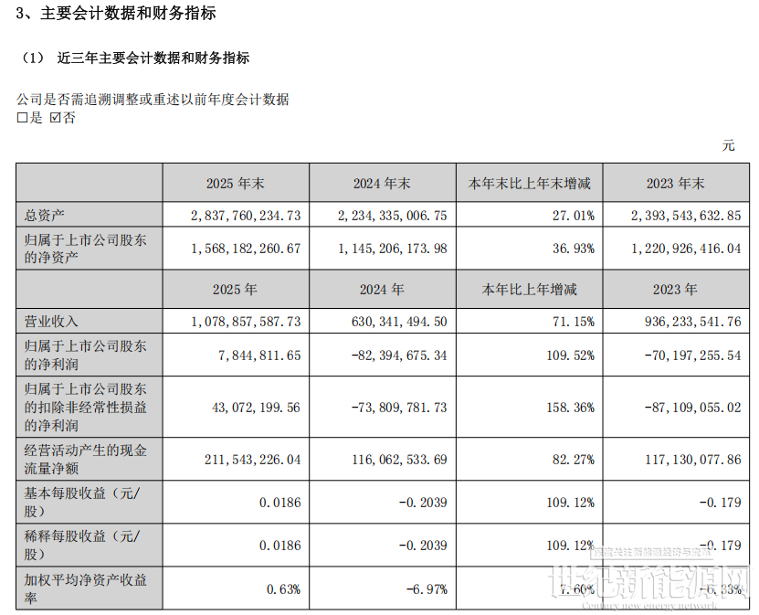 近日,厚普股份发布2025年年度报告,全年实现营业收入10.79亿元,同比增长71.15%;归属于上市公司股东的净利润784.48万元,同比增长109.52%,实现扭亏为盈。