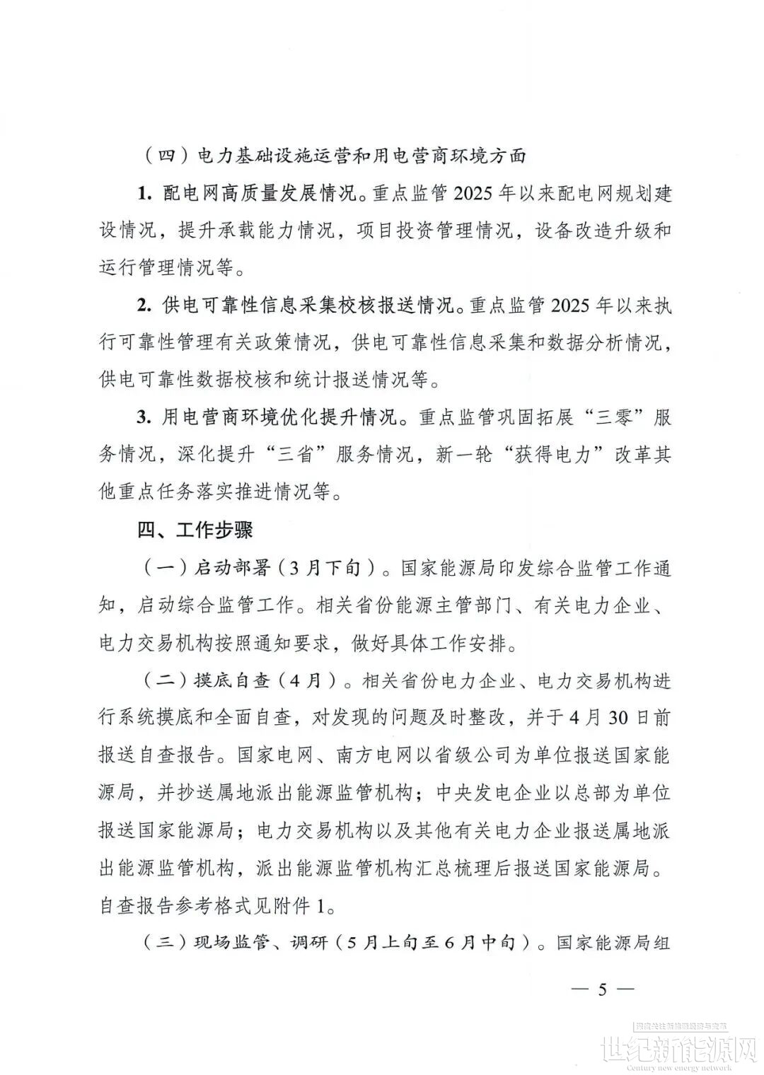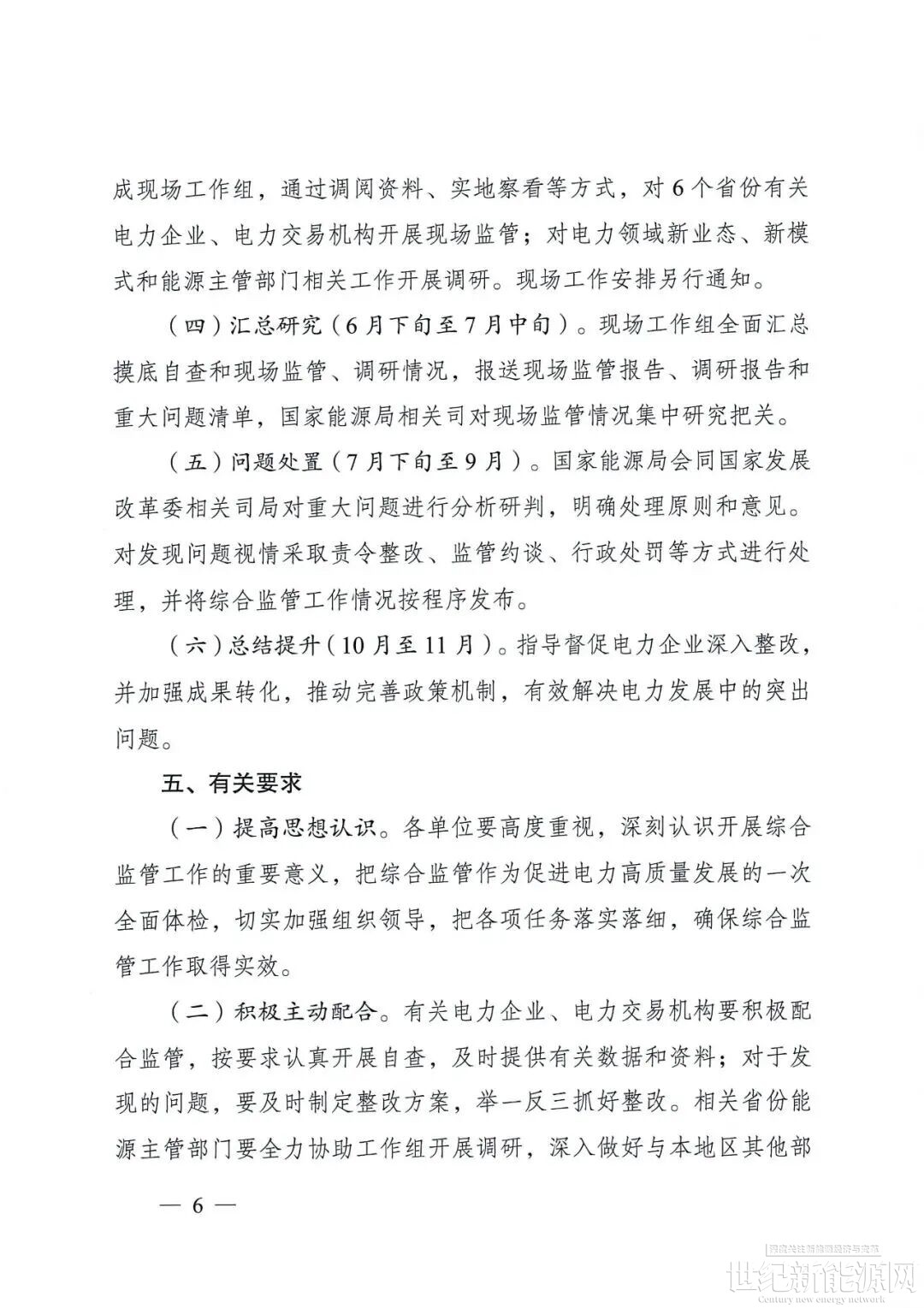 通知提到,5月上旬至6月中旬现场监管、调研。国家能源局组成现场工作组,通过调阅资料、实地察看等方式,对6个省份有关电力企业、电力交易机构开展现场监管;对电力领域新业态、新模式和能源主管部门相关工作开展调研。现场工作安排另行通知。
