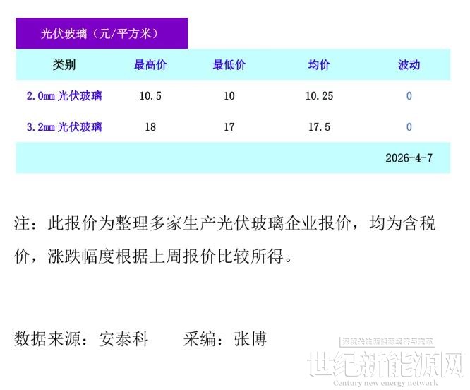 光伏玻璃价格维稳!(2026.4.7)