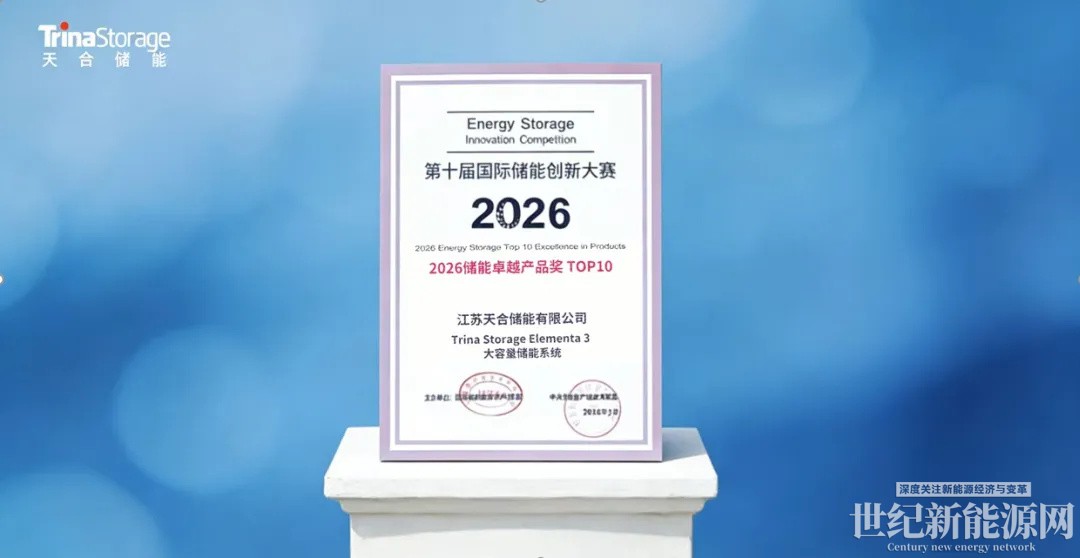 近日,第十届国际储能创新大赛决赛在北京顺利举行。经过专家现场评审与参赛单位答辩的严格评选,天合储能 Elementa 金刚3大容量储能系统从众多项目中脱颖而出,荣获“2026储能卓越产品奖TOP10”。
