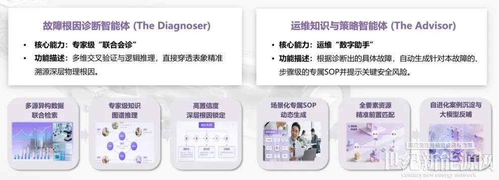 5)多智能体协同的智能运维闭环:构建“诊断-策略-交互”多智能体协同架构。其中,故障根因诊断智能体具备专家级“联合会诊”能力,通过多维验证与逻辑推理,穿透表象直达深层物理根因;运维知识与策略智能体作为“数字助手”,可依据具体故障诊断结果自主生成步骤级的专属SOP并提示风险。该智能体协同架构可实现从故障精准溯源到自动生成处置方案及评估报告的完整闭环,驱动运维从“人工响应”转向“智能决策”。