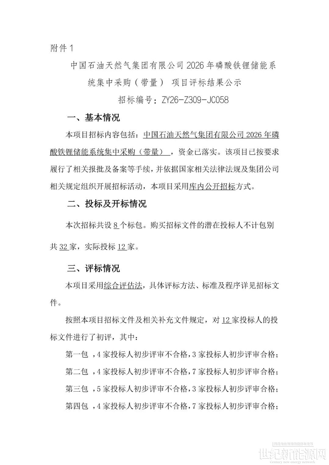 招标投标项目名称:中国石油天然气集团有限公司2026年磷酸铁锂储能系统集中采购(带量)