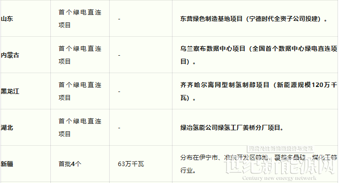 部分已公布绿电直连项目清单