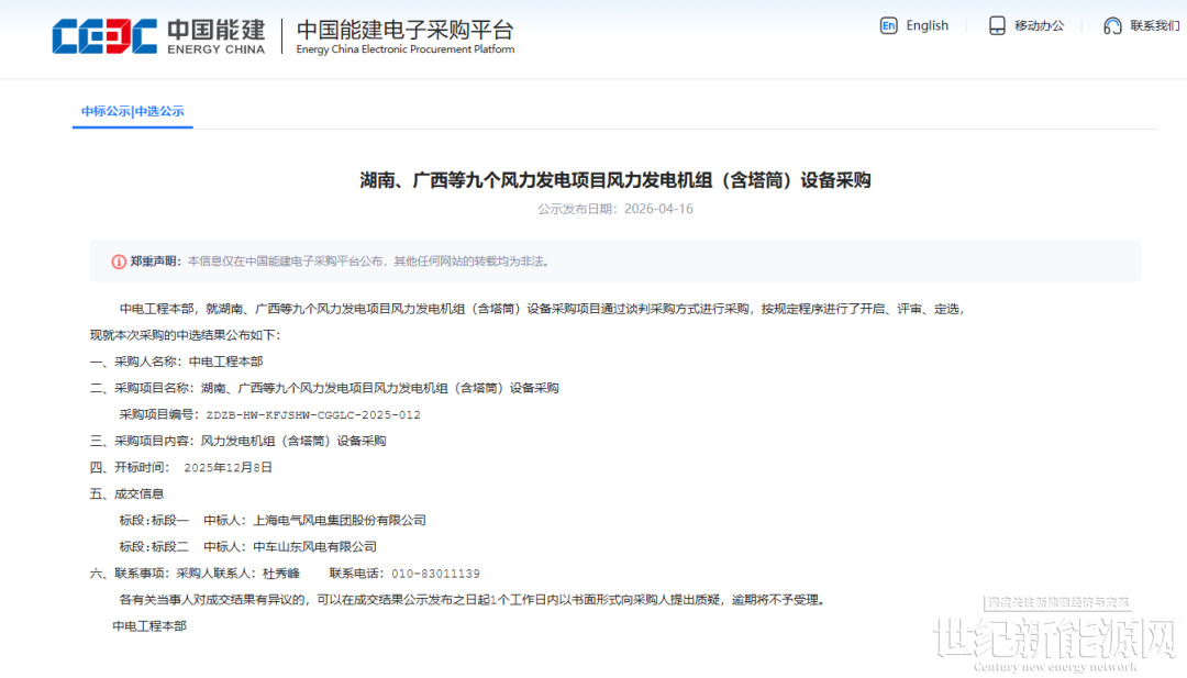16日,湖南、广西等九个风力发电项目的采购内容为风力发电机组(含塔筒)开标,电气风电、中车山东预中标。项目分布在湖北、广西、甘肃、黑龙江、河北等省区。本次采购共划分为两个标段: