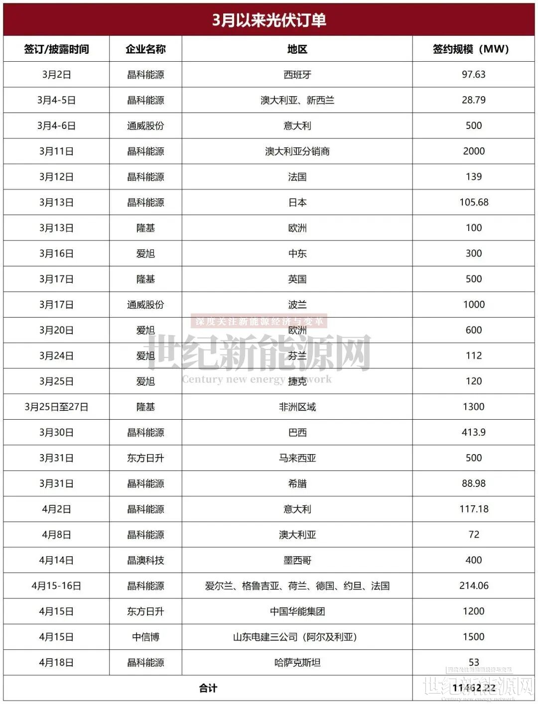 先说光伏,从订单规模来看,据不完全统计,3月以来光伏签约订单总规模超10GW,其中GW级的订单有5个。