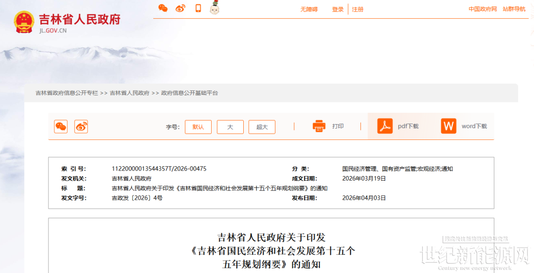 近日,吉林省人民政府发布关于印发《吉林省国民经济和社会发展第十五个五年规划纲要》的通知。