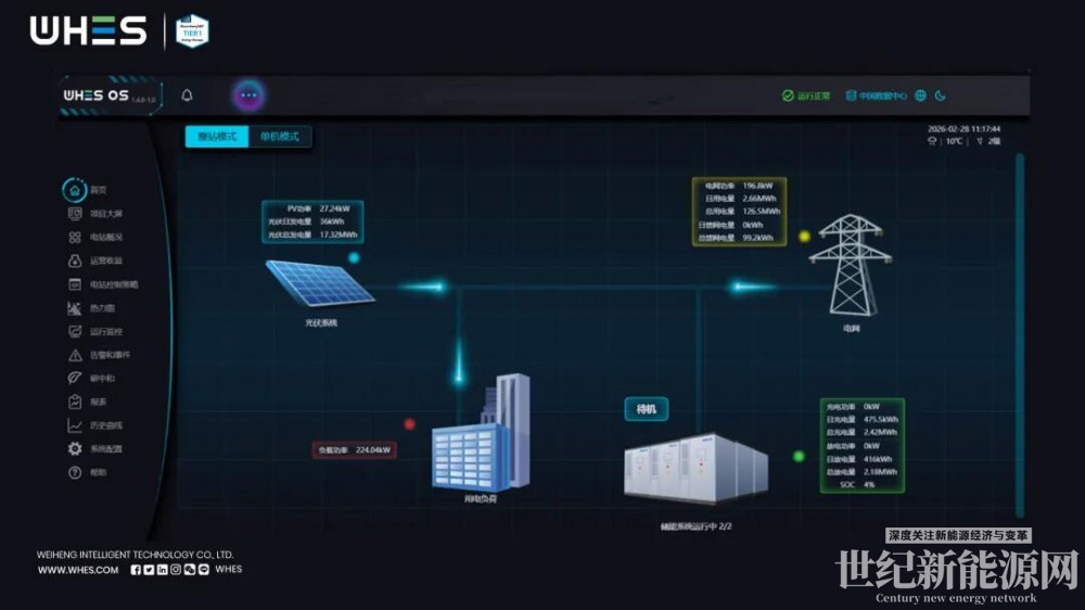 WHES OS融合AI边缘控制与云端SaaS服务,具备毫秒级响应、智能策略优化等核心能力。通过集群管理模式,实现对7座厂储能设备的统一监控与智能调度,结合算法优化充放电策略,最大化挖掘储能资产价值,为项目落地提供核心技术支撑。