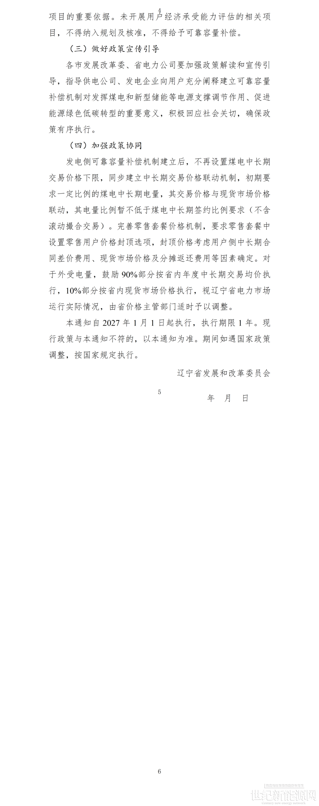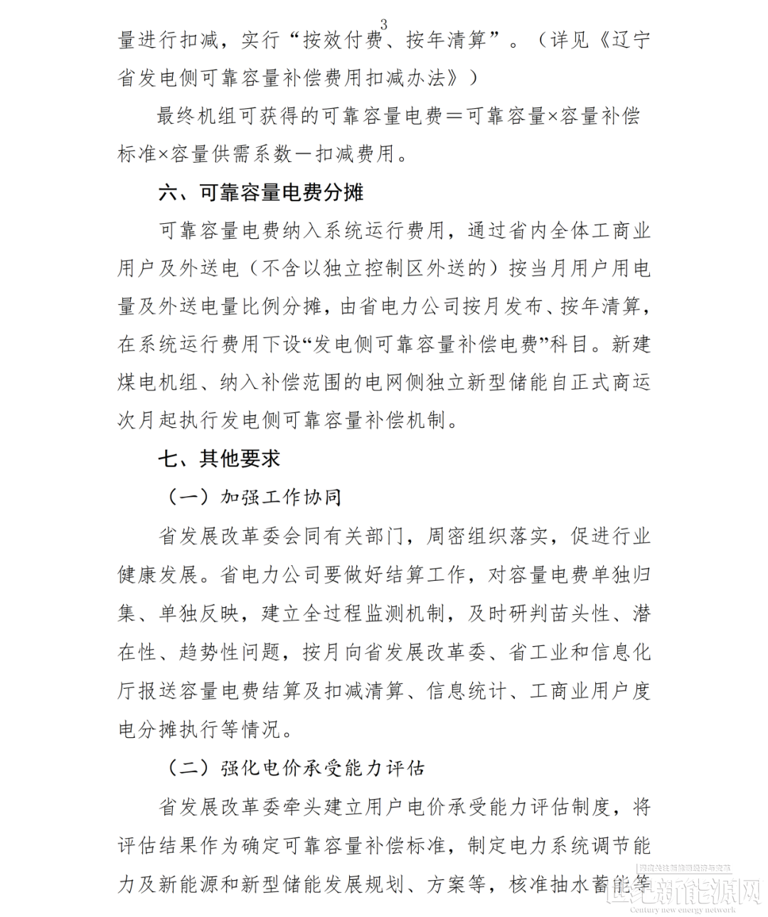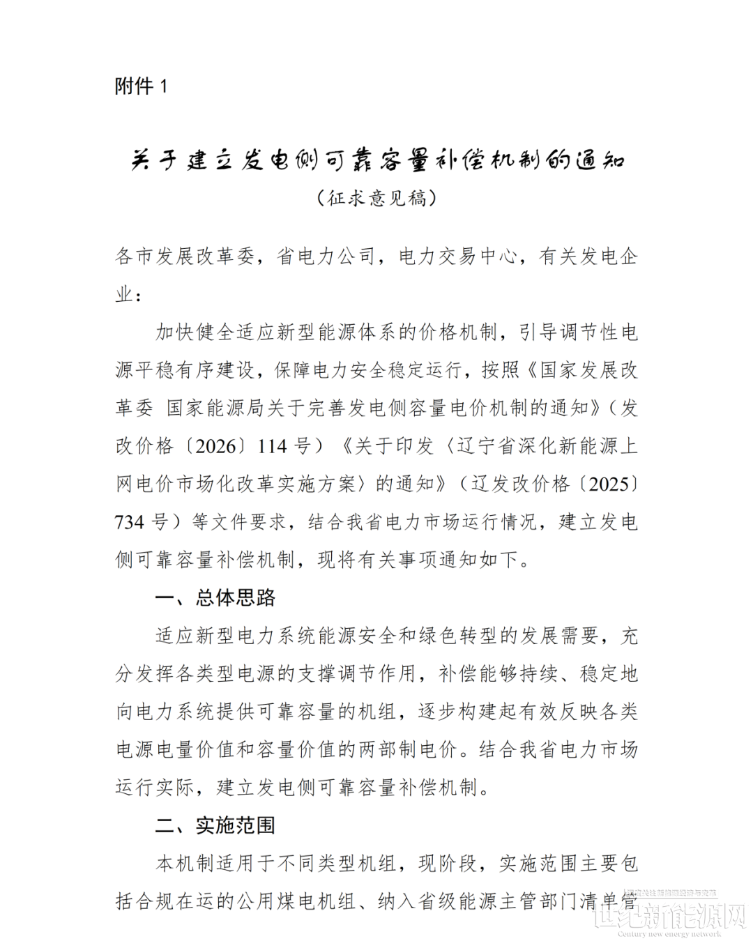 近日,辽宁省发改委发布了关于征求《关于建立发电侧可靠容量补偿机制的通知(征求意见稿)》及配套政策意见的函,对容量电价补偿机制、可靠容量补偿费用扣减办法、电力市场报价替换办法、发电侧运行成本补偿和调查实施细则进行意见征集。通知自2027年1月1日起执行,执行期限1年。根据通知,发电侧可靠容量补偿机制的实时范围主要包括:合规在运的公用煤电机组、纳入省级能源主管部门清单管理的电网侧独立新型储能及省间外购电(目前暂仅考虑直流通道送电方式)。其中,本年度辽宁省容量补偿标准暂按照370元/千瓦·年(含税)执行,执行期限1年。执行期满后,根据测算情况,结合市场运行情况、机组成本、用户承受能力等因素综合确定。