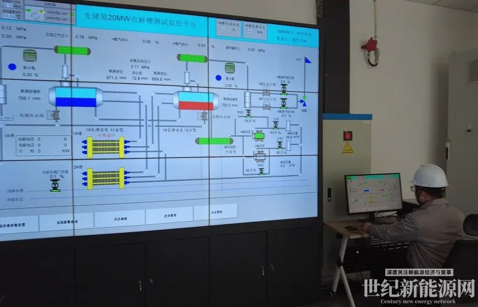 电解槽的出厂测试能力,始终是大型氢氨醇项目用户最为关注的核心服务要素。自天合元氢制氢测试平台建成投运以来,已累计完成超 50MW 规模的设备测试任务。该平台占地面积约 2000 平米,可兼容 500-2000Nm³/h 全量程制氢系统的测试需求。平台不仅能完成设备性能的基础测试与分析,更能对电解槽性能、系统控制等关键环节开展深度验证与研究。平台配套建设了中央控制室,部署了自主研发的综合能源管理系统,集运行监测、分析诊断、协调控制、场站管理四大功能于一体,构建起从设备、系统到场站的三级安全管控体系,实现对制氢系统全层级的验证、研究与分析。