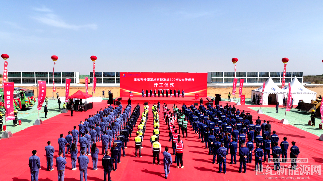 4月22日,国家第二批“沙戈荒”大型风电光伏基地,库布齐沙漠基地鄂尔多斯400万千瓦新能源项目组成部分——库布齐沙漠基地京能准旗600MW光伏项目,在内蒙古鄂尔多斯举行开工仪式。