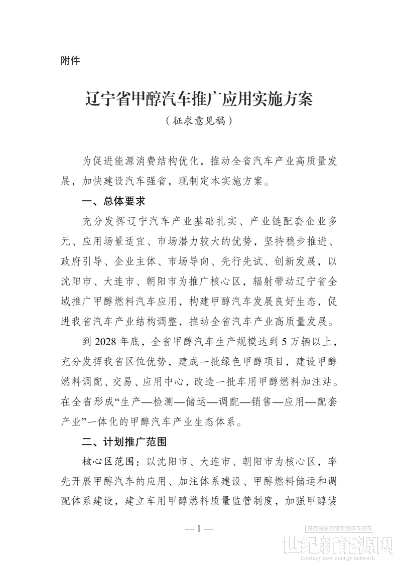 附件:《辽宁省甲醇汽车推广应用实施方案(征求意见稿)》