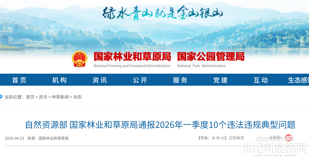 4月23日,自然资源部、国家林业和草原局通报2026年一季度10个违法违规典型问题。