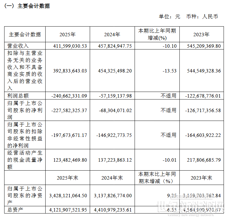 4月27日,永安行发布2025年年度报告。报告显示,2025 年度永安行公司合并口径营业收入 41,159.90 万元,比 2024 年度 45,782.49万元减少 4,622.59 万元,同比下降 10.1%。归母净利润为-2.28亿元,较去年同报告期归母净利润减少1.59亿元。经营活动现金净流入为1.23亿元,较去年同报告期经营活动现金净流入减少1374.14万元,同比较去年同期下降10.01%。
