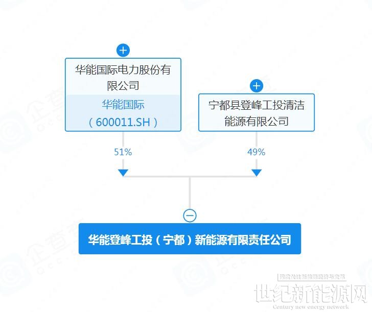 根据股权穿透图显示,新公司由华能国际电力股份有限公司和宁都县登峰工投清洁能源有限公司共同持股,双方分别持股51%、49%。
