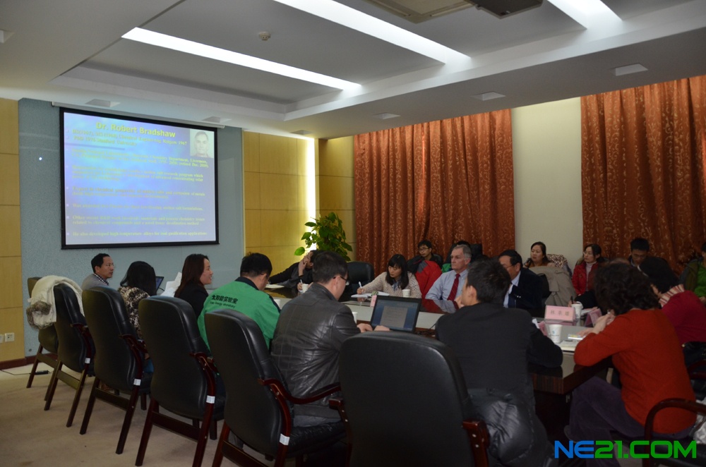 在为期一天的会议中,各方都做了热烈坦诚的交流。时间的紧张并没有冲淡会议上热烈的讨论气氛。不论是上午Robert Bradshaw博士的太阳能熔融盐储热报告,还是下午高耀京博士关于全球太阳能热发电的演讲,都引起了与会人员的强烈反响和讨论。在听取我热发电组李鑫博士和徐超博士介绍电工所熔盐吸热传热技术及储热技术的过程中,外方专家提出他们的看法,并对储热技术研究给出了的建议。此外,王志峰研究员和外方专家还就双方如何更好的进一步合作表达了各自的想法。