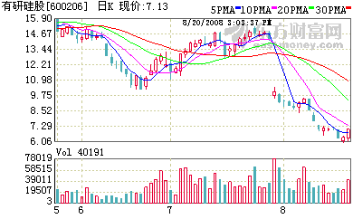 有研硅股(600206):公司是我国最大的具有国际水平的半导体材料研究、开发、生产基地,拥有整套具有自主知识产权的工程化技术和先进的工艺设备以及年产250万片集成电路级抛光片的生产能力。公司承担了“九五”“十五”多次硅材料重大课题,完成了2项国家产业化工程,获得23项新技术专利,在国内外市场具有较高的知名度和影响力,是中国硅材料行业的领头羊。由于电子级用多晶硅的纯度要比太阳能用的要高出许多,但因市场需求旺盛太阳能用多晶硅的价格反而要比电子级多晶硅价格为高。公司利用拉硅单晶棒时的头料和尾料收集起来作为生产太阳能电池用硅单晶的原料,获得了不少额外利润。08年上半年公司实现营业收入4.64亿元,同比增长36.37%。