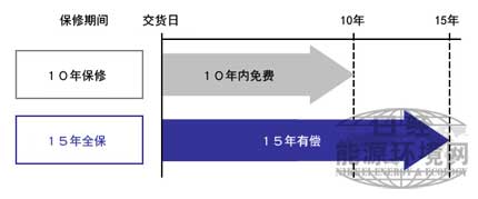 在设置之后的15年内,当需要修理和更换电池板及上述外设时,部件费用和施工所需费用也将由夏普负担。次数及金额没有上限。