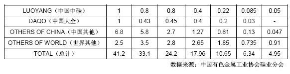 尽管目前多晶硅光伏产业处于寒冬期,但是全球多晶硅的产能依旧不断的增加。据硅业分会统计,预期2012年底全球多晶硅的产能将达到41万吨,较2011年的33万吨产能同比增加24%,其中前十大多晶硅企业的产能将达到32万吨,占其总产能的78%。