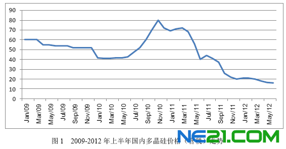 多晶硅光伏产业历经2011年4季度的价格快速下跌之后,2012上半年,总体价格维持继续下跌的走势,但其跌幅有所减缓。尽管年初受欧洲光伏市场需求强劲推动,包括进口多晶硅在内的所有光伏产品价格曾一度出现小幅反弹,但在市场供应过剩以及国际多晶硅大量低价倾销的双重打击下,上半年国内光伏产品价格幅度5-15%,而多晶硅价格跌幅超过25%。