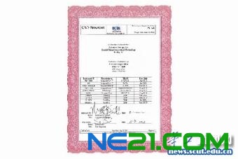 | 华工研制的聚合物太阳电池样机 | 获得的认证证书 |