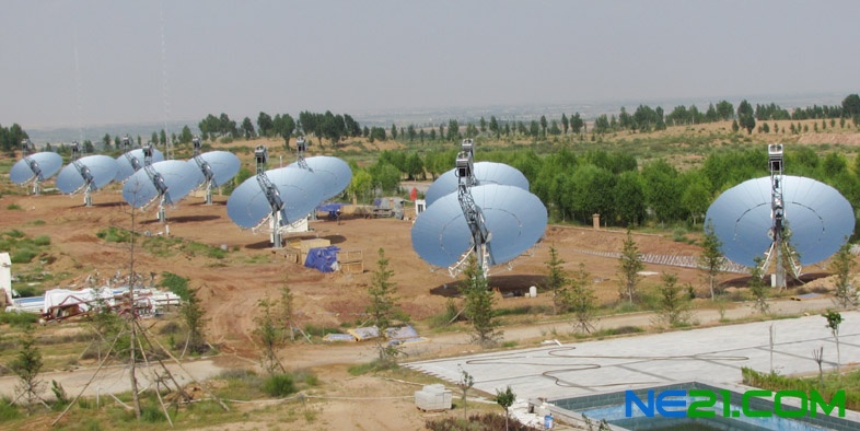 装机容量为100千瓦的碟式斯特林太阳能商业示范发电站已于2012年9月正式完工。该电站由10套碟式斯特林太阳能发电机、园区管理系统、园区监控系统以及基于变频器的配电系统所组成。