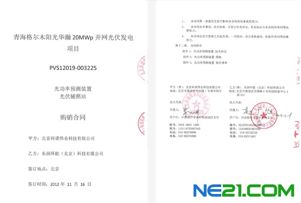 近日,东润环能(北京)科技有限公司与北京科诺伟业科技有限公司成功签订了青海格尔木阳光华瀚20MWp并网